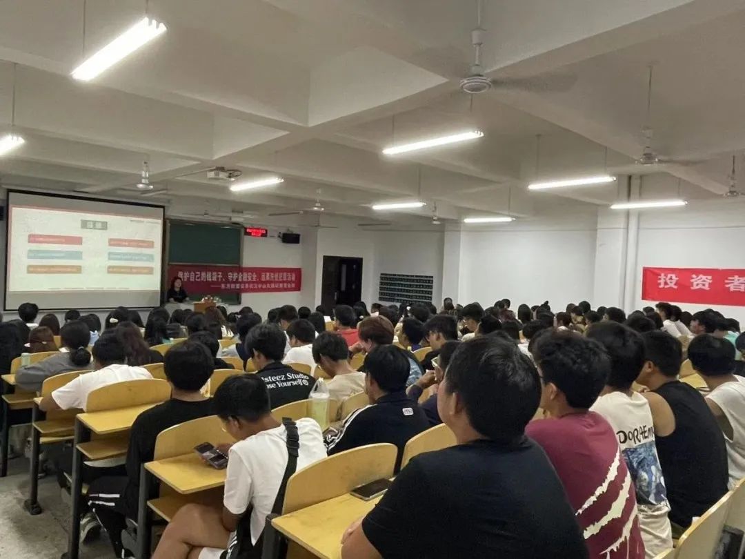 2023年9月26日晚6:30,关于防诈骗知识宣传讲座于5-225、5-226、5-227教室顺利开始。太阳成集团tyc7111cc2023级新生全员参加,关于预防诈骗宣传防骗知识工作,公司特地邀请金融行业人员前来进行知识宣传讲座。