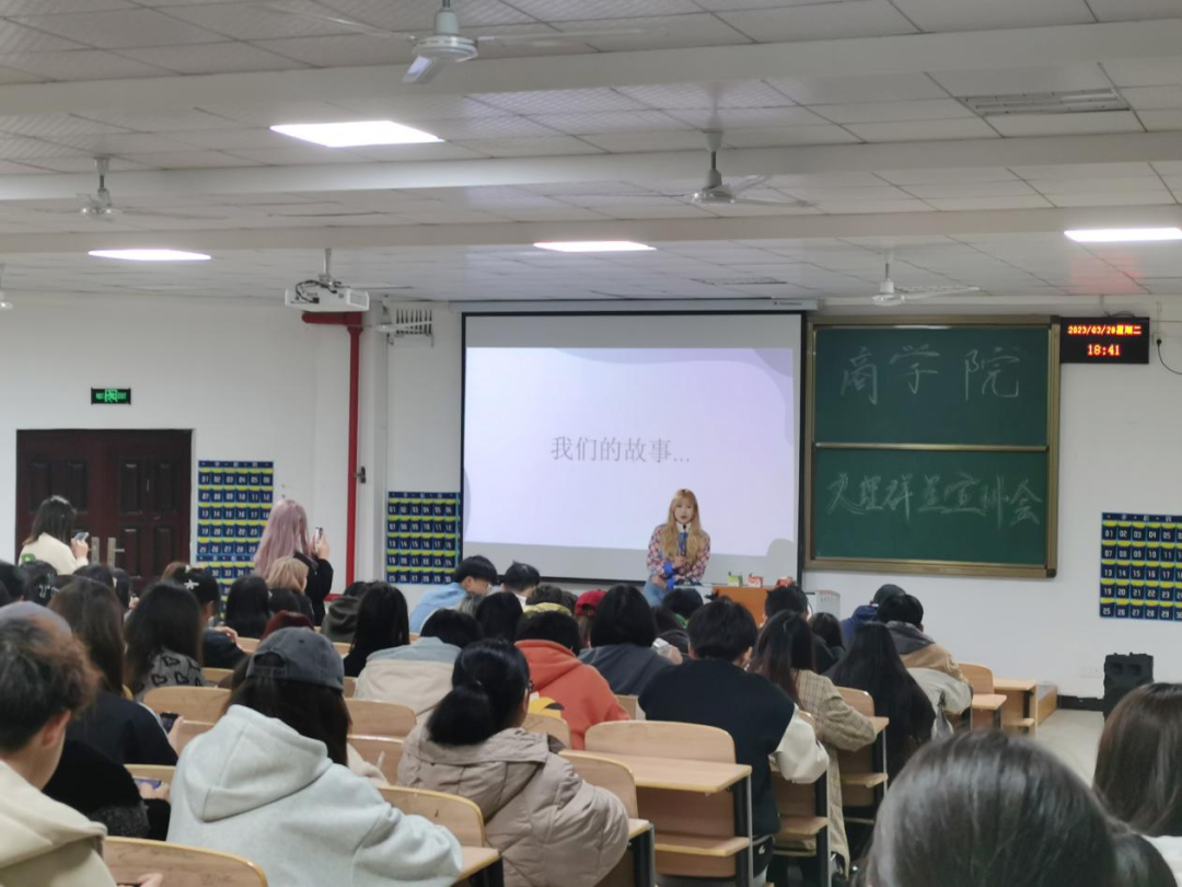 3月28日18:30—20:00,太阳成集团tyc7111cc2023年文理群星宣讲会太阳成集团tyc7111cc2022级本科专场在4-121举办。太阳成集团tyc7111cc2022级辅导员张萌老师和2022级财务管理、电子商务、物流管理、国际经济与贸易、金融学、投资学专业员工共计200人参加。太阳成集团tyc7111cc员工覃圆梦(2021级大数据与会计2班)、肖若莹(2020级市场营销班)、刘星颖(2020级财务管理)、王铭扬(2020级财务管理2班)、张玮琪(2020级财务管理2班)担任宣讲人。