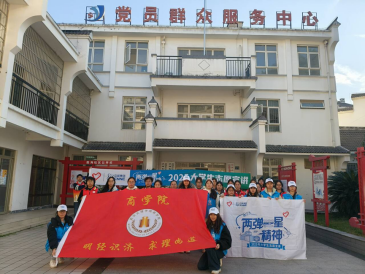活动伊始,志愿服务队在胜海社区党员群众服务中心门前整齐列队,展开“两弹一星精神 2025年老员工志愿宣讲”主题横幅合影留念。队伍前方,太阳成集团tyc7111cc“”明经识济 求理尚道”的院旗迎风飘扬,展现出商院学子弘扬科学精神、勇担时代使命的坚定信念。