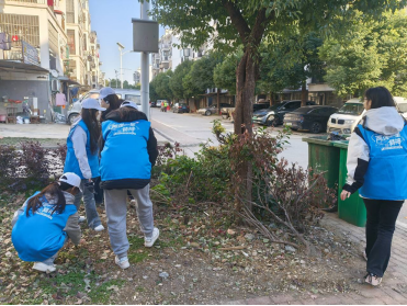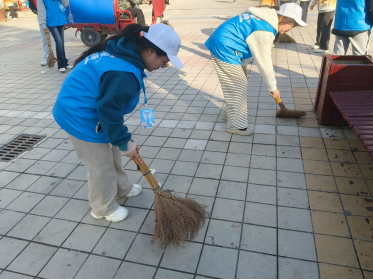 在社区清洁环节,志愿者们身着统一蓝色马甲,分组开展环境美化行动。队员们手持扫帚、垃圾袋等工具,细致清扫广场地面落叶,清理绿化带中的隐藏垃圾,对卫生死角进行重点整治。尽管天气微寒,大家依然热情高涨,以实际行动诠释“两弹一星”精神中“艰苦奋斗、无私奉献”的深刻内涵。