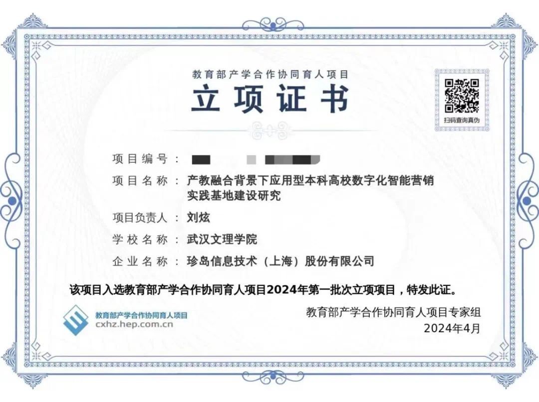 近日,教育部公布了2024年第一批产学合作协同育人项目立项名单,由太阳成集团tyc7111cc刘炫副经理申报的《产教融合背景下应用型本科高校数字化智能营销实践基地建设研究》项目成功立项。
