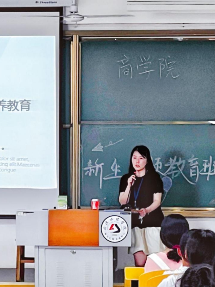 张萌老师的班会主题为《奋斗与平台共赢 构架职场蓝图》