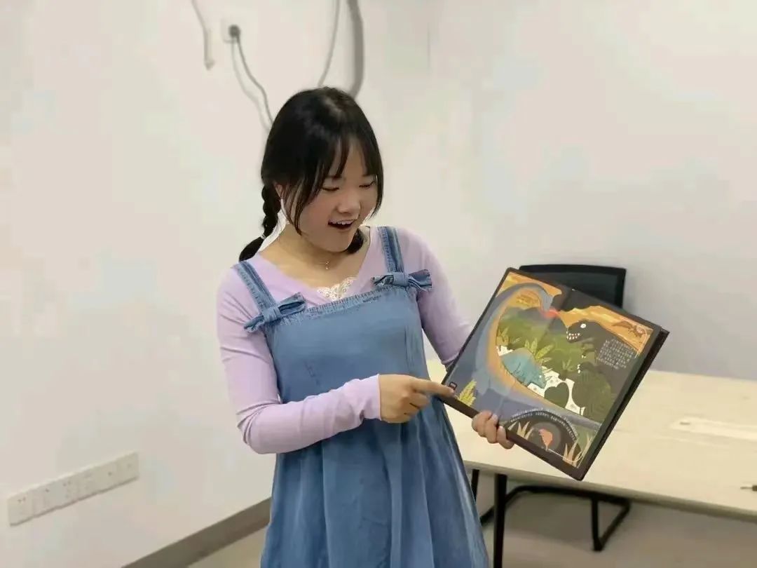在儿童组阅读环节,公司陆莹同学为社区小朋友讲读了儿童经典绘本《生命的一天》。她用妙趣横生的语言,结合儿童的认知和生活,将绘本内容与实际生活结合,声情并茂地讲述宇宙从无到有、生命从无到有的过程,引导儿童进行思考,认识科学的魅力。