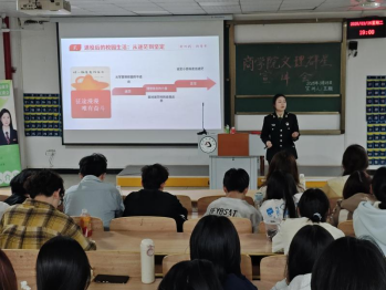 2022级物流管理专业的王颗同学以“文理启航,军营担当”为主题,带领大家走进她的服役逐梦之旅。从参军入伍到专业学习再到员工工作,再到社会实践,王颗同学用极高的热情和严谨的态度对待每一项挑战,她的坚持与努力赢得了在场同学的热烈掌声和由衷敬佩。