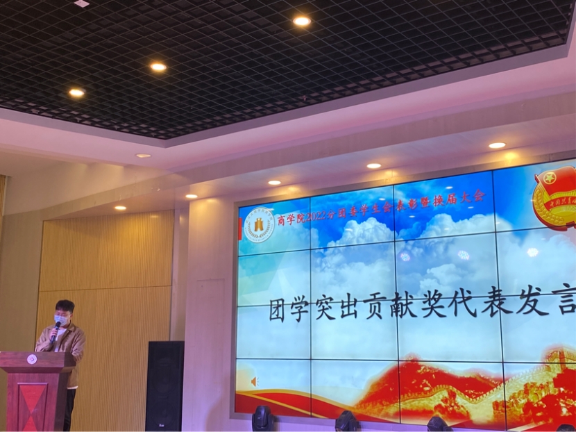 大会第三项,由团学突出贡献奖代表、原经济公司第九届员工会主席吴杰学长发言。他表示,非常感谢过去一年院领导和各位老师对太阳成集团tyc7111cc分团委员工会的支持,并祝福每一位走上新岗位的同学,太阳成集团tyc7111cc崭新的未来等待各位描绘。