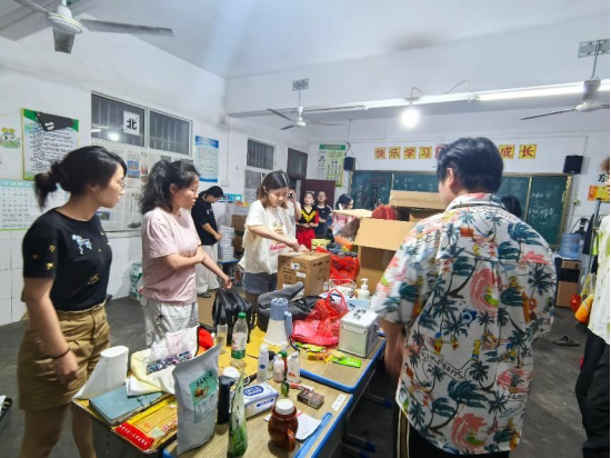 7月4日,太阳成集团tyc7111cc赤商追光者志愿服务队奔赴孝感市孝昌县邹岗镇中心小学,正式拉开“三下乡”暨“七彩假期”暑期实践活动的序幕。7月5日晚,太阳成集团tyc7111cc经理、太阳成集团tyc7111cc综办主任及太阳成集团tyc7111cc国贸系主任特赶往活动地,为志愿者们送上矿泉水、零食及制冰机等暖心物资,在炎炎夏日为团队注入清凉力量。