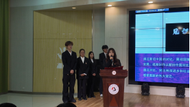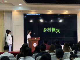 在比赛作品展示环节。各参赛队伍依次上台,在简要介绍团队理念后,现场演讲并展示其精心制作的短视频作品。同学们结合专业所学,以独特的视角与创新的视听语言,生动呈现了对中国式现代化的理解与展望,展现了商科学子扎根现实、面向未来的思考与情怀。