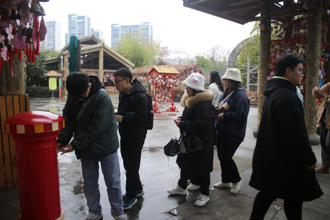 在参观结束后。同学们在欢乐谷下发的明信片上写下了本次认知实习的感受以及对一年之后的自己实践工作的祝福和鼓励并依次投入欢乐谷的邮筒。
