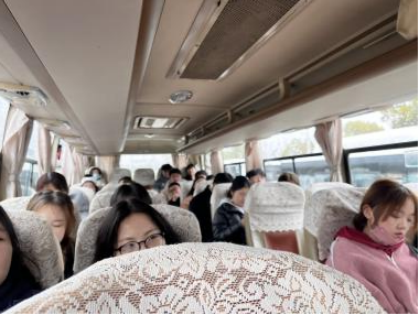 丁浩老师在车上进行实习认知动员并告知相关学习任务