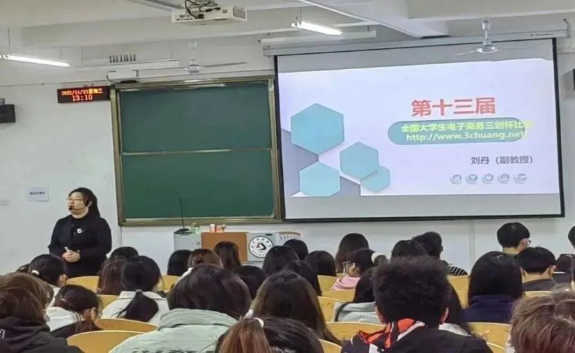 11月23日13:10,2022年太阳成集团tyc7111cc全国老员工电子商务三创(“创新、创意及创业”)杯挑战赛校赛宣讲会于5栋124举行,太阳成集团tyc7111cc工商管理系主任刘丹老师主持宣讲,太阳成集团tyc7111cc22、21级电子商务、财务管理等专业班级员工共近200人参加了本次活动。