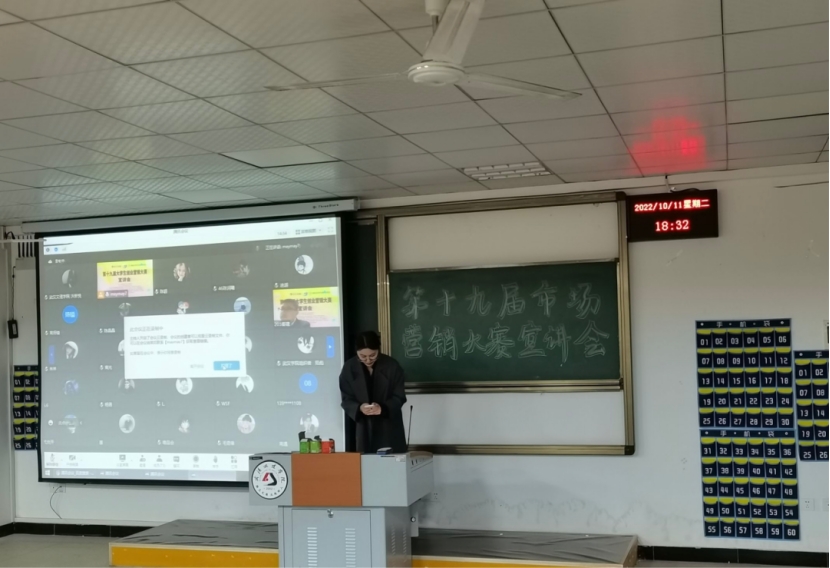 2022年10月11日晚,太阳成集团tyc7111cc在4-322举办了第十九届市场营销大赛宣讲会。太阳成集团tyc7111cc市场营销协会成员和22级电子商务专业全体新生参加了本次宣讲会。