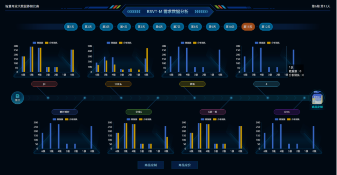 参赛选手扮演智慧企业中各个岗位角色,模拟企业的全流程经营与管理。通过对市场环境、消费者需求、竞争对手以及企业内部业务数据的分析,完成6个周期的经营对抗。在此过程中,参赛选手通过对企业内、外部数据的多维度分析,不断优化各自经营策略,以达成企业最优目标。